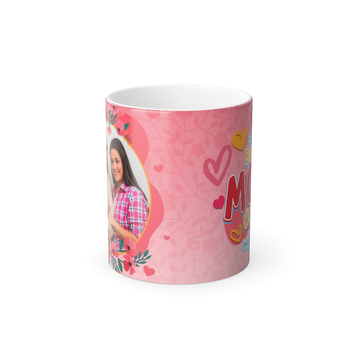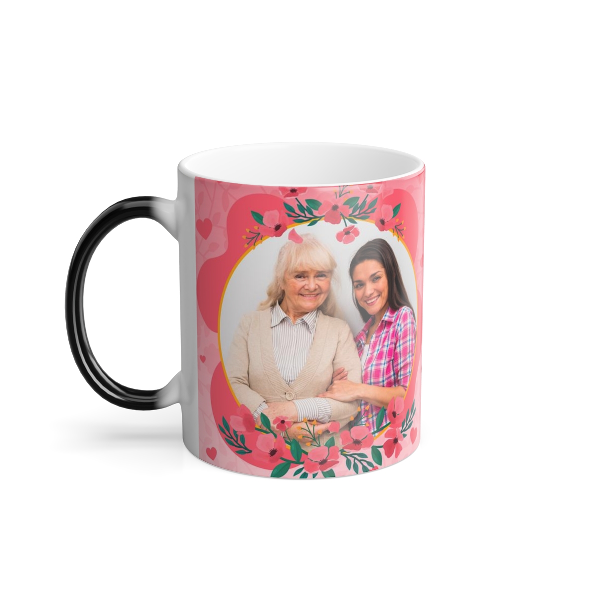 Gorgeous Mothers day personalized Mug.? The mug is available in 2 tone, standard ceramic and a color morphing variant which is heat reactive. This nicely designed mug is a? super popular gifts for Moms for Birthdays and Mothers Day. The color morphing mug is heat-reactive and reveals your designs once the mug gets warm. and will go back to its original black outside and white inside when it cools down. The mugs boast a C-shaped handle which helps keep a sturdy grip. They come in one size ? 11oz (0.33l) ? plenty for that big morning cup of coffee.