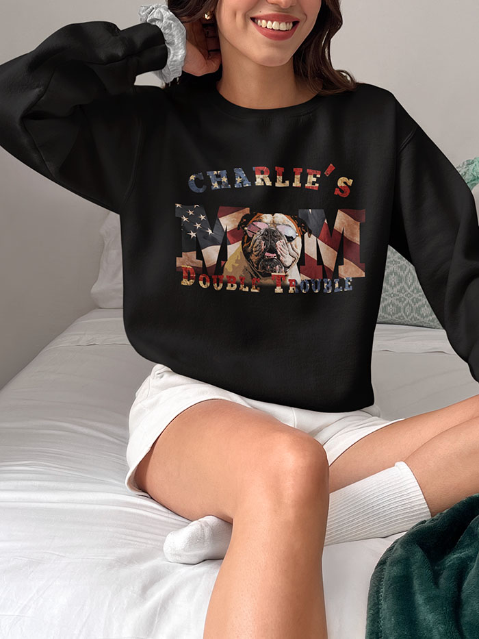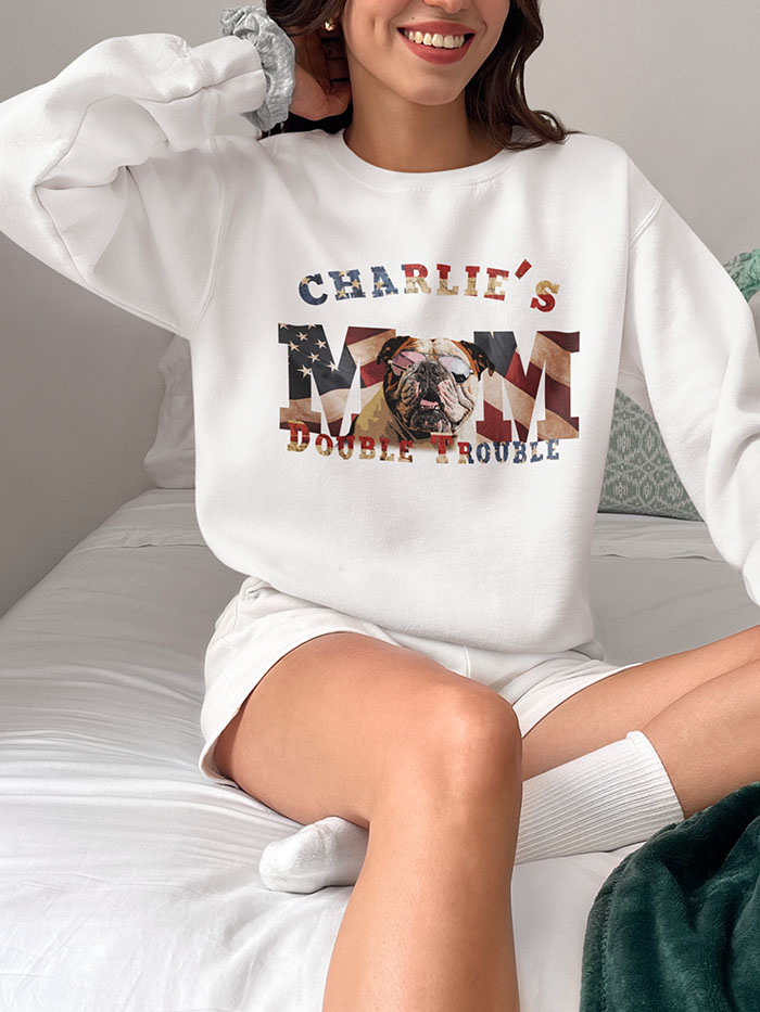 This Dog Mom T-Shirt with Personalized pet & US flag design is the perfect gift for any dog lover and patriotic pet parent. The shirt exudes a sense of pride and love for pets and country, making it a great addition to any casual wardrobe. Ideal for any day to show off your furry friend.