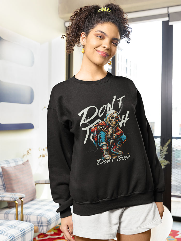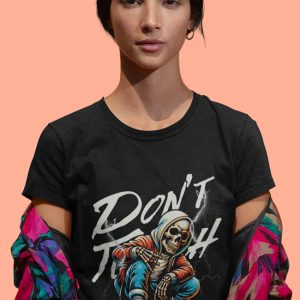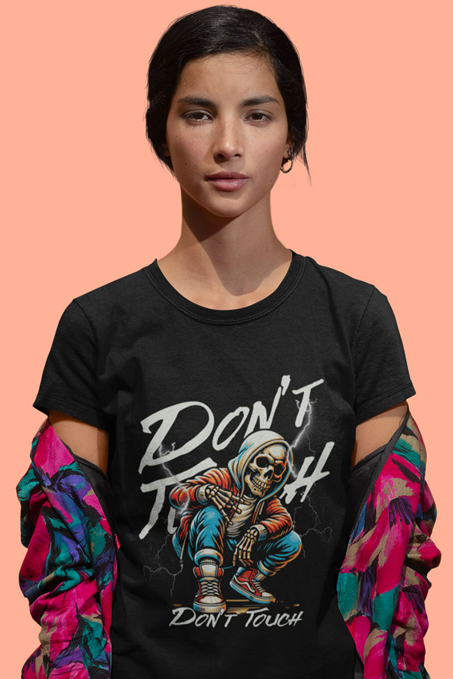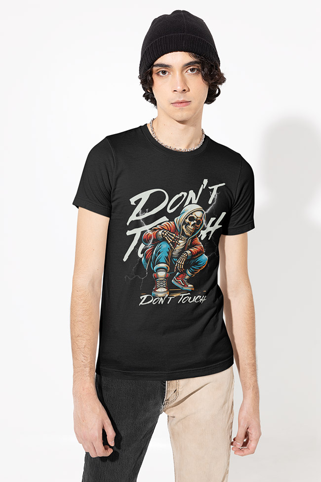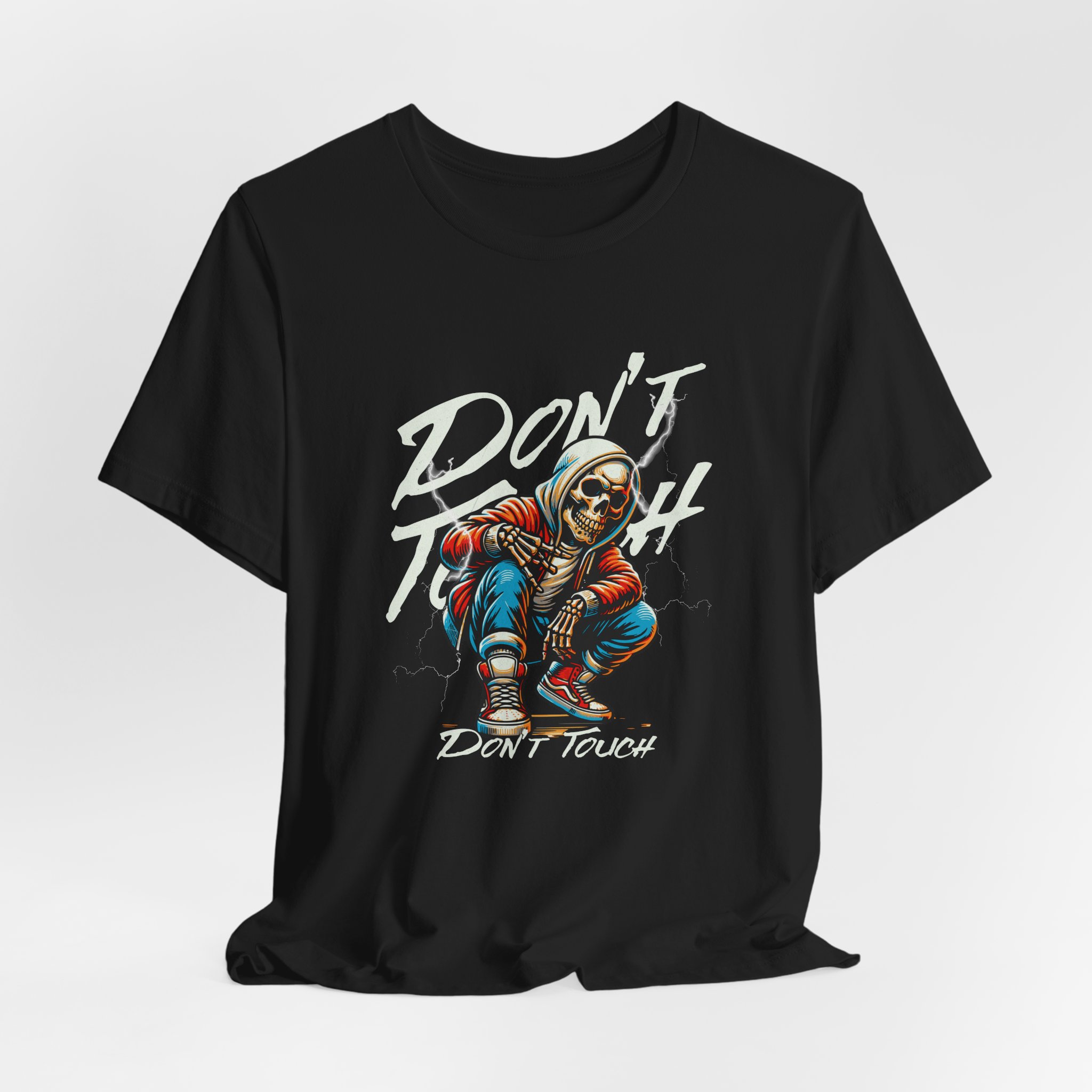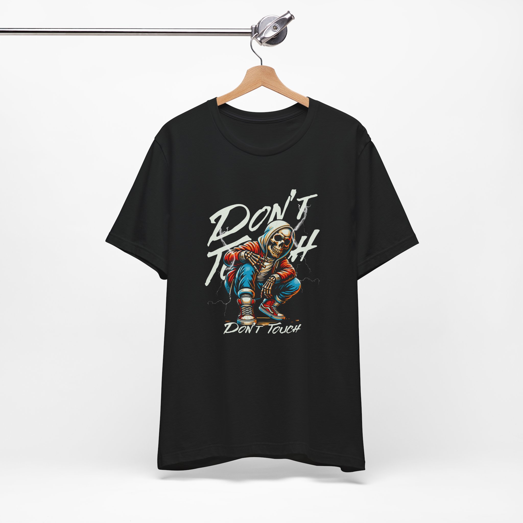 Don?t Touch ? HipHop Streetwear Tee ? Dripping with attitude and laced in street gear, this skeleton says it all: look, but don?t touch. A bold fusion of HipHop edge and underground style, this tee is for the untouchables ? the ones who walk hard, live loud, and answer to no one.