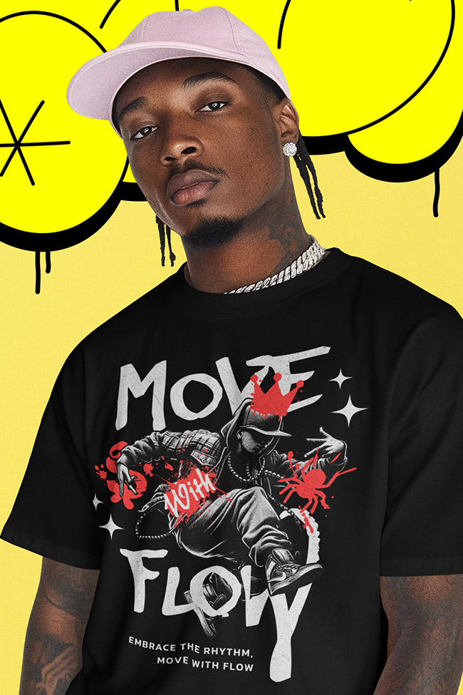 Embrace the Rhythm ? Move with Flow Streetwear HipHop Tee ? Style that hits like a beat drop. This tee is all about moving with purpose, flowing with confidence, and staying locked into the rhythm of the street. Clean lines, raw energy ? made for those who don?t just follow the beat? they become it.