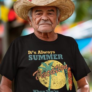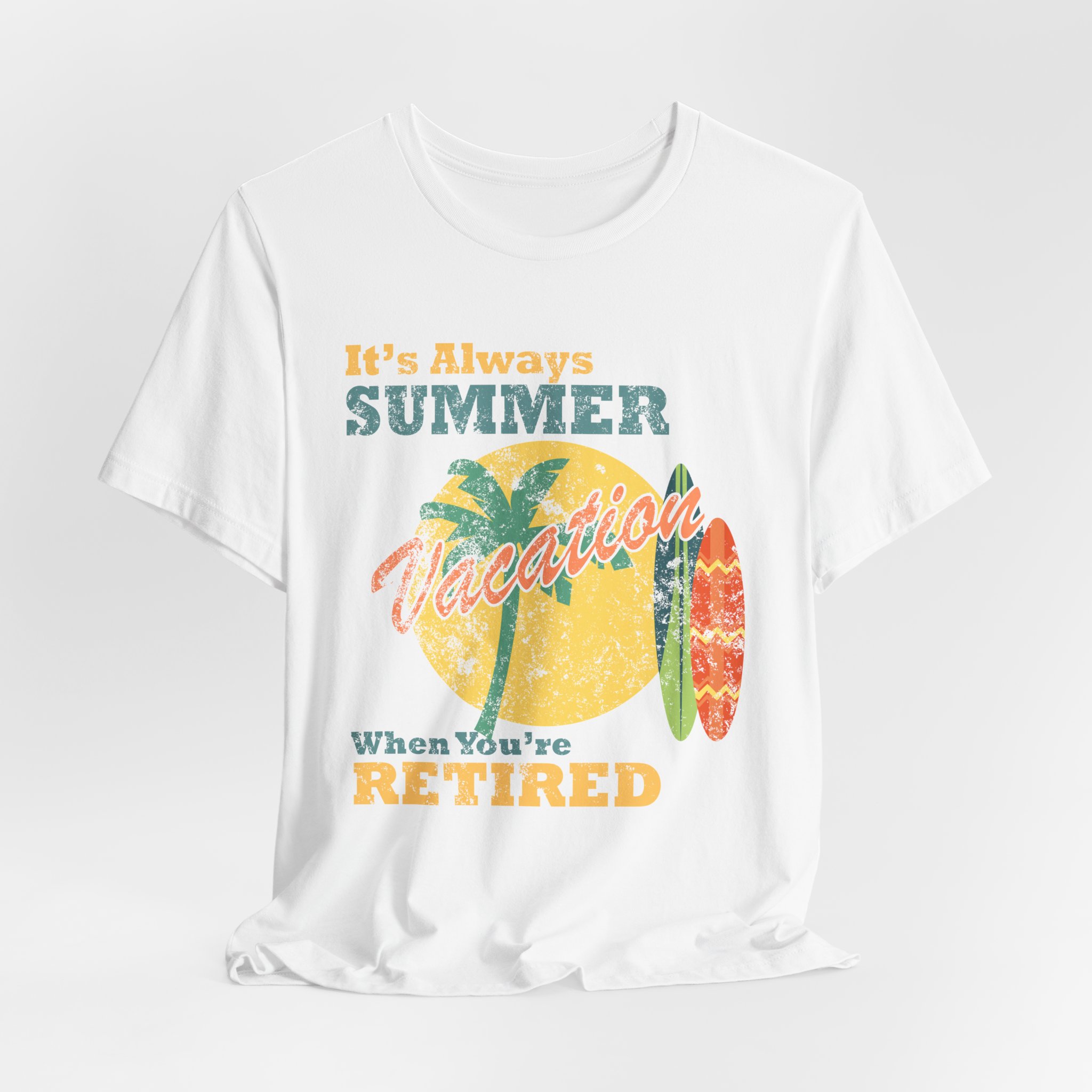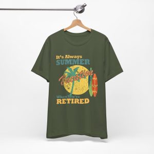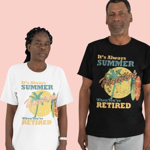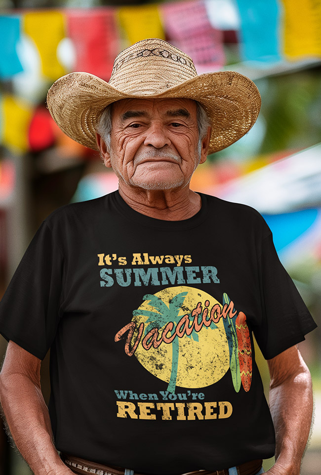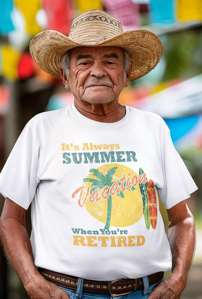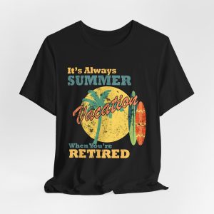 Kick back, relax, and let the good vibes roll. This retro tee celebrates the endless summer of retirement ? where the days are yours and the dress code is chill. With vintage styling and sunny attitude, it?s perfect for beach walks, backyard beers, and doing absolutely nothing in style.