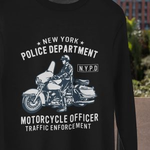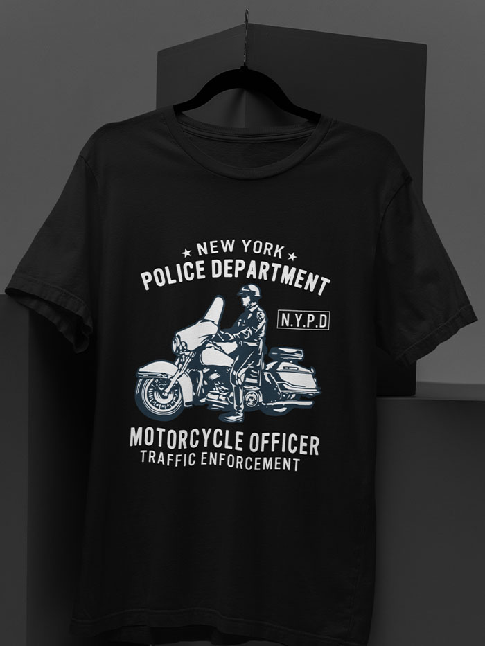 Straight outta the precinct and onto the pavement. Inspired by classic cop shows and two-wheeled patrol legends, this tee brings vintage NYPD grit to life. Faded graphics, tough attitude, and a throwback to sirens, chase scenes, and street justice ? for fans of old-school law and order with a rebel streak.