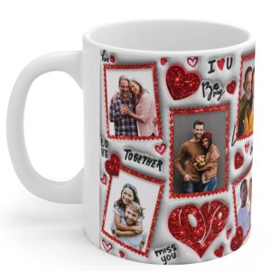 Looking for a Valentine’s Day gift that’s both thoughtful and practical? This beautiful design holds 10 pictures of your favourite memories. It’s a sweet gesture that shows you care, and they’ll appreciate the cozy feeling of starting each day with their own special mug