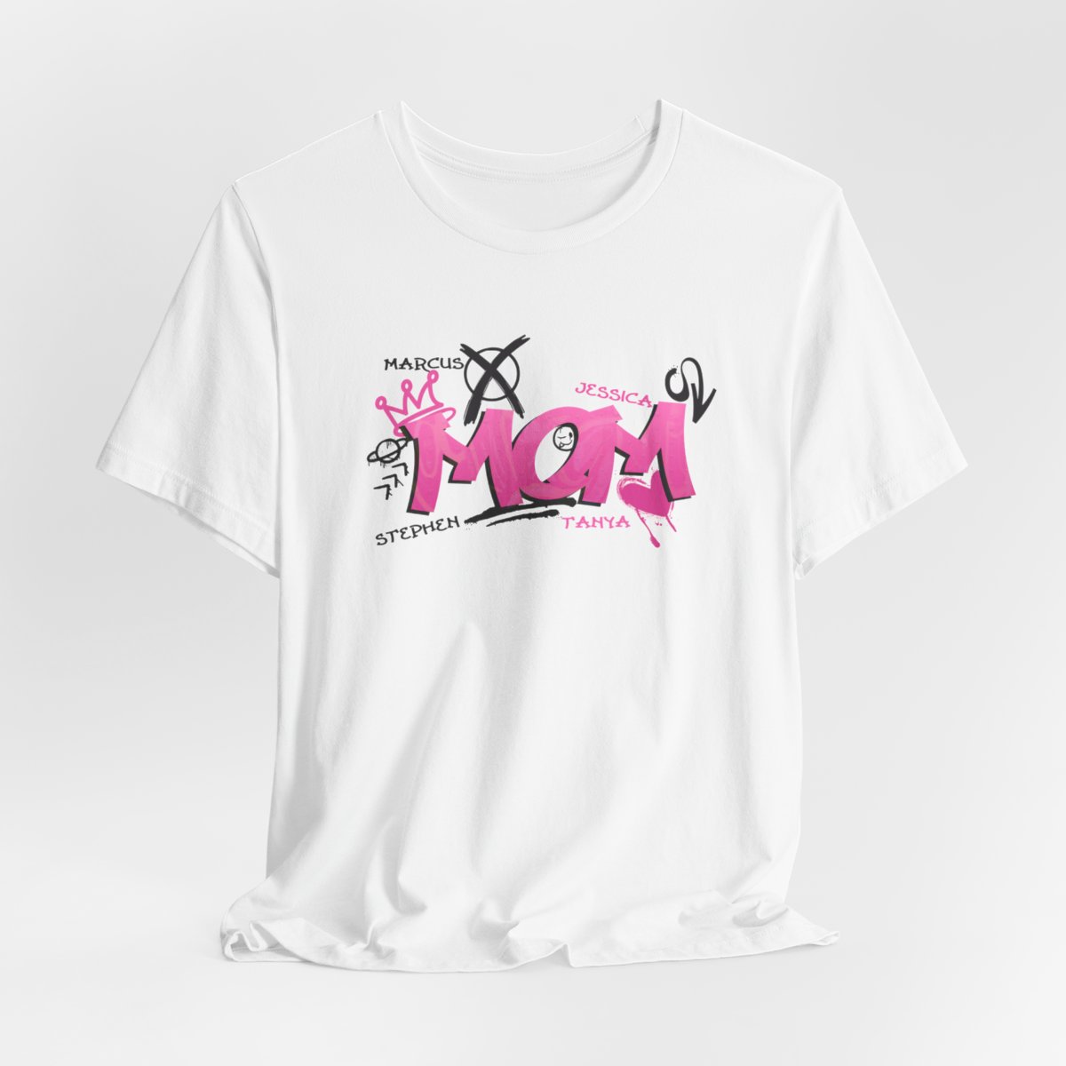 Personalized Mother’s Day graffiti T-Shirt with a street vibe. Perfect for those who love unique and customized clothing. Suitable for casual wear and as a thoughtful gift for Mother’s Day celebrations.