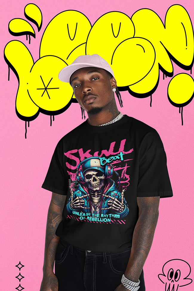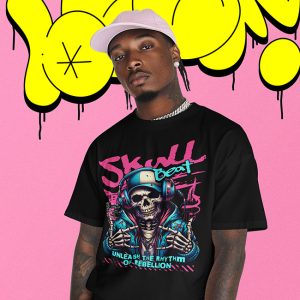Skull Beat ? Street Art HipHop Tee ? Unleash the spirit of rebellion with a design that hits hard and never holds back. Fused with raw street art energy and underground HipHop vibes, this tee is for the fearless. Bold, gritty, and unapologetic ? wear it loud, live it louder.es.
